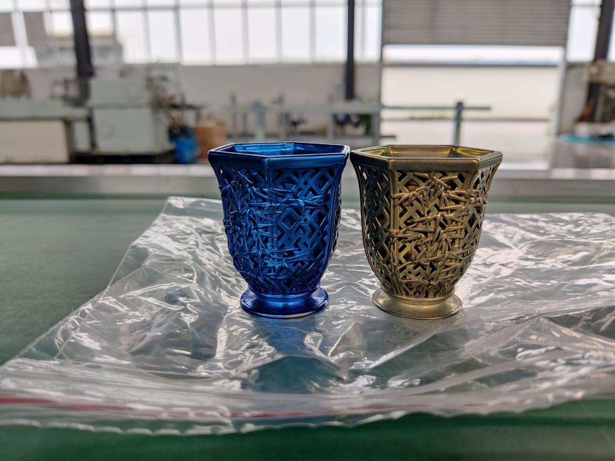 產品特征:以純鈦為材料進行鏤空夾層設計,在突顯美觀的同時體現了增材制造的技術優勢,健康、隔熱、保溫、輕盈是它的特點,再賦予鈦金屬特有的表面著色工藝使它更具魅力。