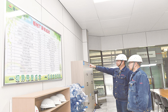 1月13日,攀鋼釩板材廠熱區(qū)生產(chǎn)單元職工王俊與楊曉明(左)正在討論生產(chǎn)異常成本。今年以來,該廠將生產(chǎn)指標(biāo)價值化,實現(xiàn)異常成本清單上墻,全面開展成本班班算、人人算、天天算的算賬生產(chǎn)模式,追求極致成本管控,力保生產(chǎn)經(jīng)營目標(biāo)順利完成。