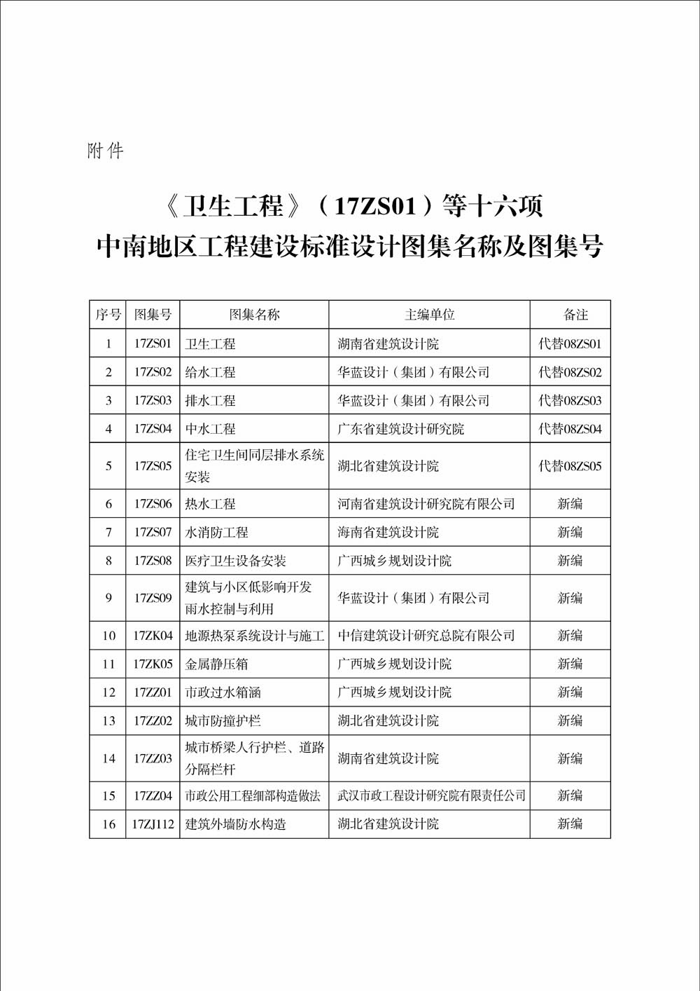 2017年中南標推出給水排水專業(yè)、暖通專業(yè)、市政專業(yè)等系列新圖,共計十六項,已經中南地區(qū)工程建設標準設計技術委員會審查,并獲中南六省區(qū)住房和城鄉(xiāng)建設廳聯(lián)合批準發(fā)布。