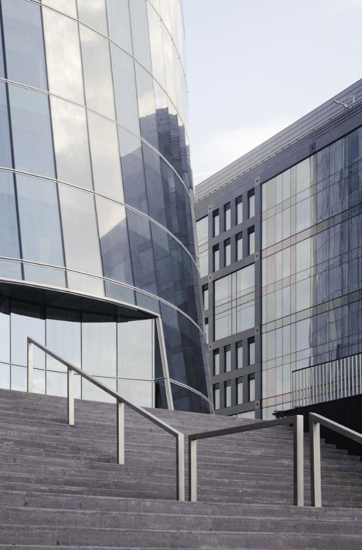 圣彼得堡銀行金融集團的行政總部坐落在涅瓦河和奧克塔河交匯處的河畔,它是奧克塔新綜合建筑開發的一部分。涅瓦河畔的一組典型新樓盤正在努力與南側和北側的原有建筑和諧相處。建筑高22層,它的新立面處在綜合建筑群的主軸線上。圣彼得堡銀行是建筑群的中心建筑,兩側是兩座9層高的翼樓。這三座建筑坐落在同一個基座上,不同的體量就此被統一在一起。基座的兩層地下停車場為該中心提供了充足的停車位。跨越堤壩的人行天橋最終使設計的重點放在河岸與塔樓之間的新軸線上。帶水上觀景平臺和餐廳的游船碼頭最終將行政大樓與城市的主要干線連接起來。這項規劃是同圣彼得堡的葉夫根尼?格拉西莫夫及其合伙人公司(EGP)合作來進行管理的。