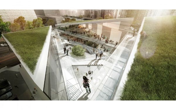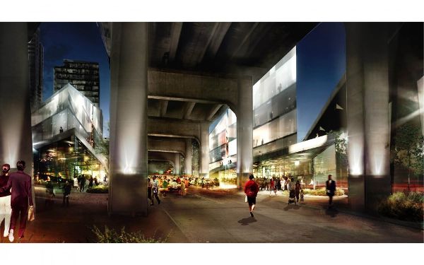 這些令人沮喪的空間毫不意外地被汽車占據,沒有人在這里舉行活動,BIG提議將這些空間轉變成文化場所和行人停留地點。玻璃“棱鏡”將提供理想的零售與公共空間,而原有的建筑立面和橋體表面將被改造成引人注目的室外畫廊。此外,Bjarke還設計了一條穿過橋下的道路,成為戶外市場、節日慶典和音樂會的舉辦場所。城市設計小組成員Peter Wreglesworth對這個項目的評價令人印象深刻,他把這個項目描述為“城市藝術的整體組成”。
