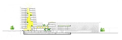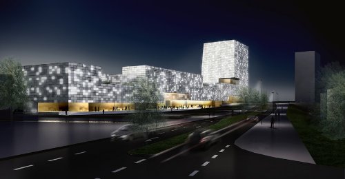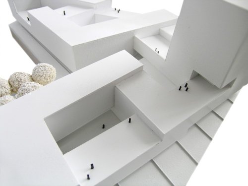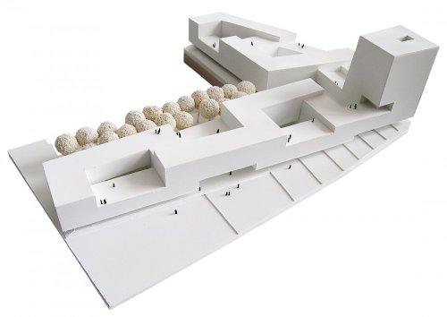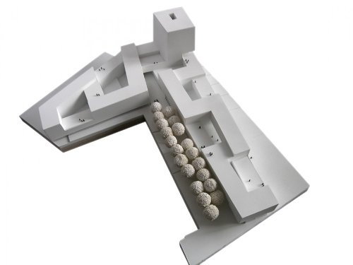 城市總體規(guī)劃嚴格確定了該地塊的密度,建筑有雕塑感的形體與周圍的景觀相呼應(yīng)。可以穿越建筑群而不進入建筑中。建筑物強烈的曲折體型漸次達到具有紀念碑意義的最高點,以此作為新BSU的象征。