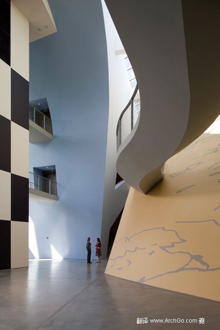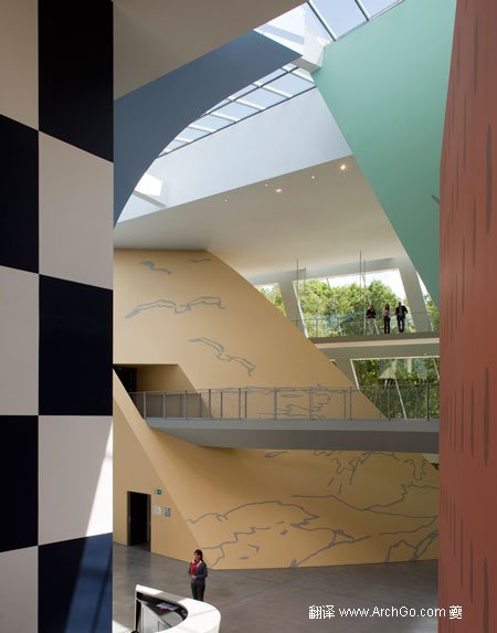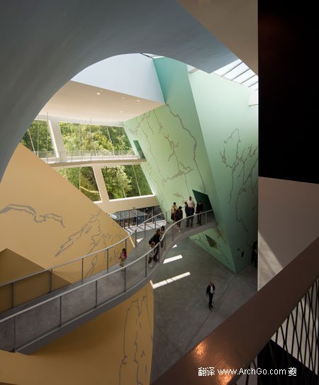 博物館在城市之外,鮑贊巴克認(rèn)為基地的環(huán)境使訪問(wèn)者體驗(yàn)到并側(cè)重于“四個(gè)景觀元素 ”——四個(gè)不同的展覽場(chǎng)地,用不同的形式、顏色和設(shè)計(jì)來(lái)自展現(xiàn)埃爾熱不同繪畫(huà)風(fēng)格。 蜿蜒的行人天橋連接的展示空間,大而夸張的窗戶(hù)讓外界的自然光充滿(mǎn)整個(gè)空間。