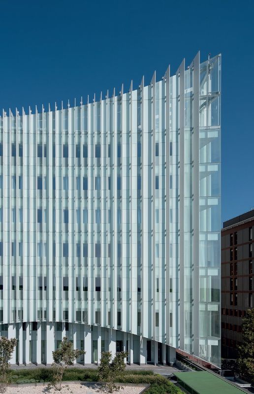 Mario Cucinella建筑事務(wù)所在設(shè)計米蘭圣拉斐爾醫(yī)院的新擴建項目時,希望創(chuàng)造一個高效的建筑,以歡迎病人,并建立平靜的建筑性格。為了實現(xiàn)這一目標(biāo),該團隊優(yōu)先考慮自然光,最大限度地保護隱私,并將該設(shè)施包裹在一個柔和的弧形幕墻系統(tǒng)中,陶瓷鰭片設(shè)計用于鎖定熱量。