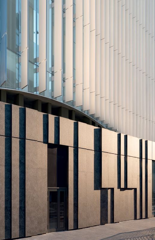 為了提高病人和工作人員的健康水平,盡可能地將自然光引入建筑。陽光被百葉窗式的立面處理所散射,以減少熱量的攝入。陶瓷百葉窗的深度根據(jù)太陽的路徑而變化。陶瓷還被特別設(shè)計用來分解煙霧顆粒和保存熱量,從而減少60%的能源消耗。此外,約60%的立面是由不透明的絕緣板組成的,改善了建筑圍護結(jié)構(gòu)的能源性能。