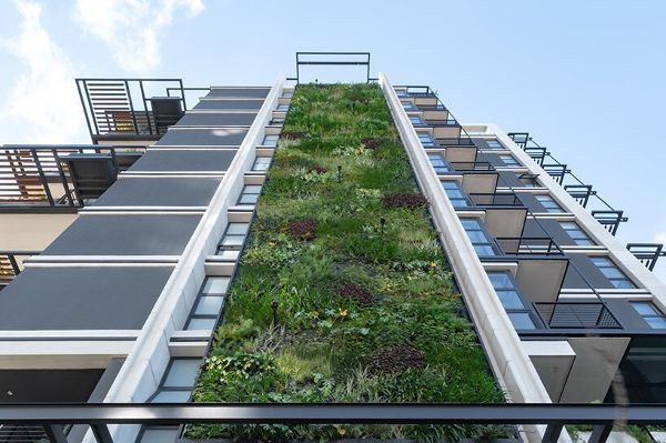 該住宅樓的開發重點是被動策略和可持續發展,包括使用雨水和循環水的自動灌溉系統,以及帶有可食用植物的果園,居住者可以收集這些植物供食用。