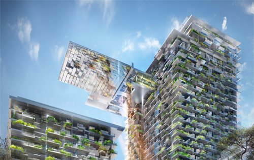 在該項目中,努維爾與法國藝術家,植物學家Patrick Blanc合作,完成了塔樓立面上眾多豎向花園的設計工作. 花園空間與平臺的豎向連接部分的植物將塔樓包裹了起來,從而將新區域中心的中央花園延伸到這個綠色建筑中.