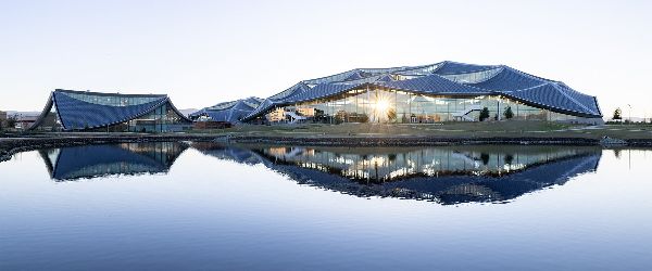 灣景區是一個100%的電動建筑,連廚房都是電動的,以減少碳排放。建筑物的部分動力來自于一個獨特的波浪形天棚天花板,上面覆蓋著龍形規模的太陽能電池板,每年產生40%的電力。與附近的風力發電場的電力相結合,灣景區將成為谷歌首批90%的時間依靠無碳能源運營的園區之一。