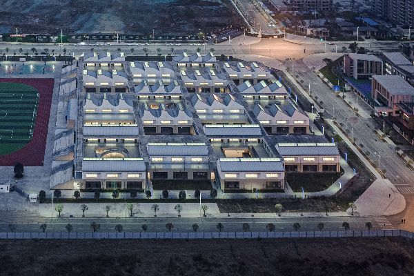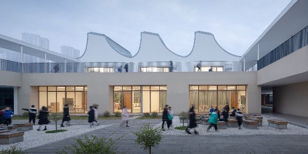 TAO建筑事務所完成了這所沁園小學,主題是利用自然光。項目位于中國四川省,在其廣闊的場地上以模塊網格的形式自由擴展。在這個組織結構中,兩層的教學區塊組合在一起,每個區塊包括一個第一層的“平臺”或“功能教室”,以及一個第二層的“小屋”或“標準教室”。在這兩層建筑之間是一個高架平臺,它創造了露天庭院,以確保戶外空間。