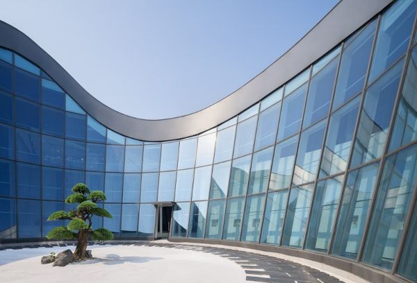 整個納貝爾科技文化體驗中心看起來就像山脊。在建筑的前面,水池表面產生了令人迷醉的反射視覺效果。走近后,人們沿著一條蜿蜒的小路,進入開放的入口。看到光線通過弧形陶瓷墻的間隙滲透到室內。
