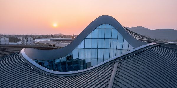 總部位于上海和臺北的建筑公司CROX,完成了中國杭州的納貝爾瓷磚公司總部。該團隊從該地區的歷史背景和地形中汲取元素,設計了流動山形屋頂為特征的品牌文化展示廳。