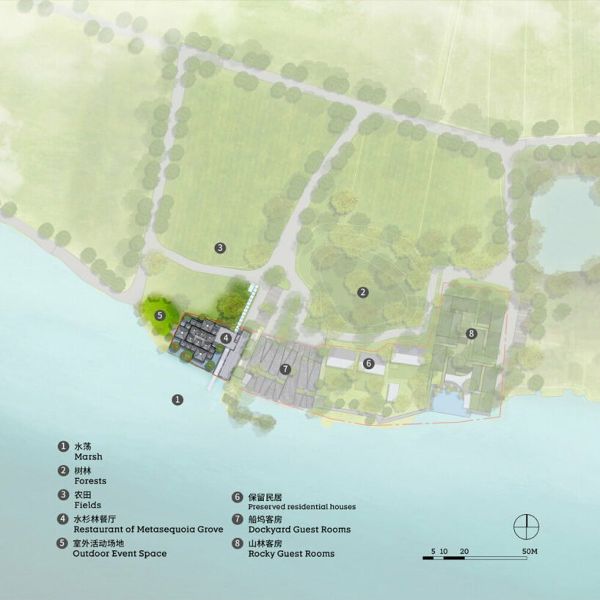 GOA解釋說:“與其說水杉林餐廳是一個建筑,不如說是一個景觀,它沉浸在自然環境中,最終成為自然的一部分。它在水邊提供了快樂的時光,也提供了一個和平的自然體驗,在這里,建筑能夠以新的方式來看待景觀”。