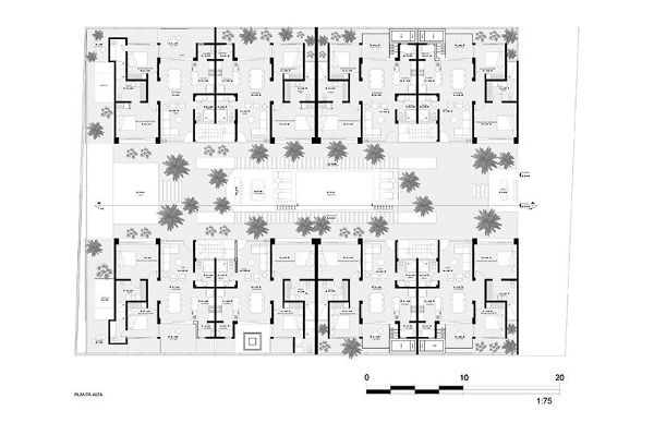 Grajales Arquitectos的TOH住房項目同時被其對自然材料的使用所定義,其外墻由當地采購的藤蔓板圍住。在每個單元的臥室里也可以看到有紋理的藤蔓板。該團隊解釋說。就像鳥兒在巢中休息一樣,我們的用戶也會有同樣的感受。