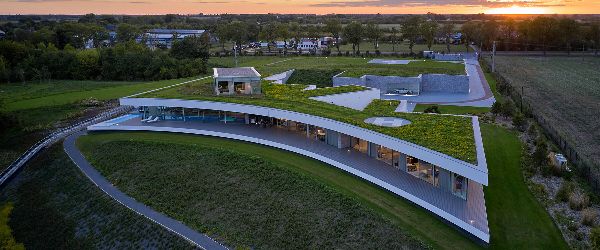 建筑公司Mobius Architekci在波蘭華沙附近完成“沙丘屋”住宅項目。房子坐落在綠色的草地上,周圍是郁郁蔥蔥的森林,獨特的弧形輪廓讓人聯想到海沙,因此該項目被正確地命名為——“沙丘屋”。波蘭建筑師描述彎曲的形狀為豎琴,橫跨山坡,沿著蜿蜒的納雷夫河的線條延伸。