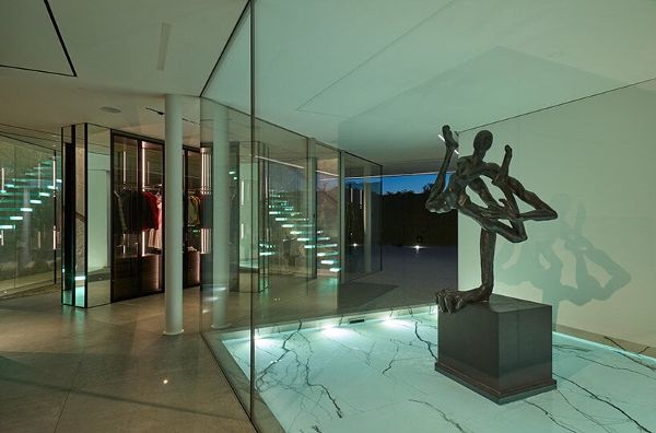 河邊看,建筑師把臥室放在右邊的部分;中間是帶廚房的客廳,左邊是娛樂室。同樣值得注意的是,在一層樓高的房頂上放置了一個釉面矩形盒子。它像一個潛望鏡,可以俯瞰周圍的樹冠。房子有兩個游泳池,包括一個室內游泳池和兩個外部泳池,還有一個300米長的跑道和一個可以與山腳自由交流的移動平臺。房屋有多種自動化設備,再加上創新的技術解決方案,保證房屋的舒適度。