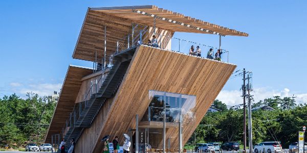 隈研吾設計事務所(KKAA)在日本海岸推出了其最新作品。俯瞰沙丘和開闊的水域的鳥取高濱咖啡館,它由交叉層壓木材和鋼筋混凝土組成的混合結構,似乎像向上“通向天空的樓梯”。兩層樓的咖啡館頂部由雕塑般的木質涼棚遮擋的觀景天臺,提供前方景觀的廣闊視野。最終,憑借其紋理和木板的外觀,該建筑散發出一種溫暖的氣息,與附近的沙丘柔和地融為一體。