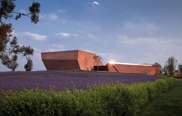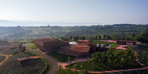 位于中國(guó)云南省彌勒市郊區(qū)的云南東風(fēng)云藝術(shù)中心,由杭州的line+工作室設(shè)計(jì),用紅色石板塑造了一個(gè)超大規(guī)模的建筑群。此“紅石陣”綜合藝術(shù)中心來(lái)自于競(jìng)賽方案,有五個(gè)類似石頭的體量,面對(duì)著綿延無(wú)際的云貴高原和崎嶇的山脈。