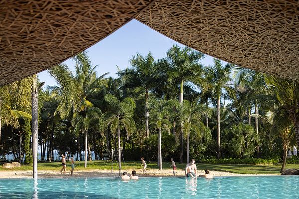 三亞EDITION酒店希望刷新和激活他們的戶外海灘區域,希望將年輕、時尚的生活方式和社會活動引入到這個原本有些荒蕪的空間,并將其變成海棠灣的一個地標。各個更新的海灘俱樂部為周圍不同的活動區域提供了強有力的聯系,并形成了一個充滿活力和歡樂的集合點。泡吧的人、享受日光浴的客人、游泳的人和排球的人在樹狀的雨棚和開放的空間下團結在一起。