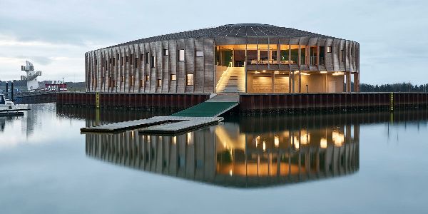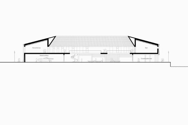 該設施的下層通過一座橋與大海直接相連,承載著船只的存儲和車間空間。上層容納了各種機構,如賽艇、皮劃艇、帆船、潛水和鐵人三項俱樂部,以及公共區域、教育中心和培訓設施。不同尺寸的開口穿透了外墻,讓豐富的日光灑在室內。當太陽落山時,溫暖的光芒使該中心充滿活力,從遠處看就像一座漂浮的燈塔。