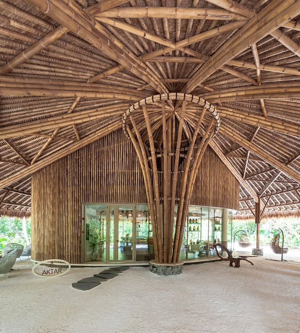 Desa Bambu 設計團隊嘗試用竹子建筑建造一個由漂浮在馬爾代夫群島上的幾個露天亭子組成的健康療養所。 Joali Being度假村通過在竹子框架上開發的可持續建筑綜合體提供沉浸式體驗,頂部是自然編織的屋頂檐篷。 設計團隊與 Asali Bali 工程集團合作,實現了 Bodufushi 島上的酒店和水療中心項目,包括俯瞰大海的 Yoga Shala 單元以及與自然環境融為一體的 Apothecary 建筑和休閑區。工程和施工旨在保持浮動休閑綜合體的建筑理念,提供技術解決方案和細節,以保持結構在特定島嶼氣候下的質量和穩定性。