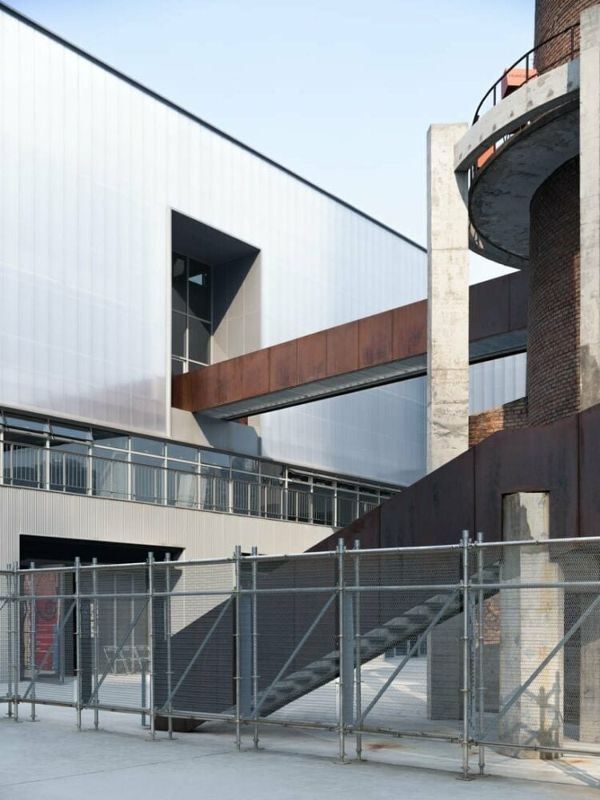 各種藝術展覽空間被整合在原來高大的鍋爐操作間內,同時,較小的房間被改造成商業空間,以資助、規劃和容納各種活動。在保護其原有的框架和類型,包括高大的煙囪和大型煤渣的情況下,一條新的跑道連接了室外廣場和三樓的主要展覽廳。除了滿足功能需要,這個過渡空間還突出了應用于磚煙囪的新干預措施,并標志著過去和現在之間的橋梁。