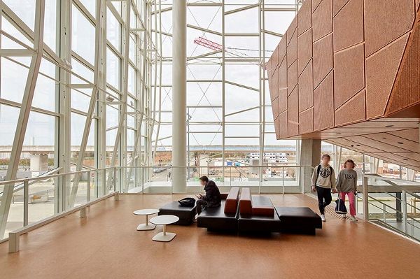 Bernard Tschumi urbanistes Architectes和Groupe-6最近完成了法國最大的教育項目之一,巴黎薩克雷大學的新生物-醫藥-化學研究和教育大樓。這個耗資2.83億歐元的項目位于巴黎,是該大學的一個重要科學中心,占地7.4萬平方米(80萬平方英尺)。該建筑群以玻璃外墻和花紋屏風為正面,由三個獨立的教育和研究翼樓組成,由一個被稱為“C?ur de P?le”的中央中庭連接,并設有研究實驗室、教室、禮堂、社交空間、餐廳、辦公室、后勤區域和地下停車場。