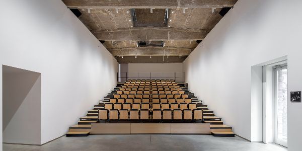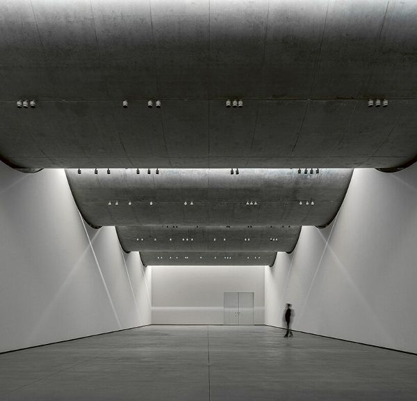 在內(nèi)部,設(shè)計(jì)理念探索了無(wú)柱、水平延伸的結(jié)構(gòu)形式和構(gòu)造表現(xiàn)力。更具體地說(shuō),朱佩工作室建造了兩個(gè)新的展廳,每個(gè)展廳都展示了無(wú)柱、大跨度、現(xiàn)澆混凝土的美學(xué),并有一些變化。第一個(gè)展開為拱形彎曲梁,從相鄰的兩個(gè)拱門漫射出自然天光。 同時(shí),第二個(gè)大廳展示了一根混凝土多肋梁,以傳達(dá)材料本身的特性。