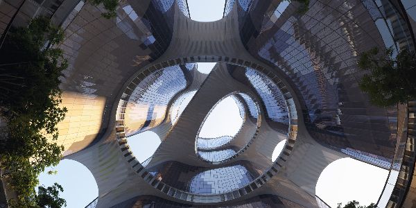 ZHA和CABR設(shè)計(jì)的泰康金融中心,基于武漢作為信息和交通網(wǎng)絡(luò)中心樞紐的地位,它由漢口濱江商務(wù)區(qū)城市總體規(guī)劃中三座相互連接的建筑的環(huán)形組成,將東面的長(zhǎng)江公園和濕地以及南面的城市新中央公園整合在一起。這些新的公共公園是武漢海綿城市計(jì)劃的組成部分,該計(jì)劃使雨水的自然儲(chǔ)存和滲透,以減緩其釋放,幫助防洪,同時(shí)促進(jìn)其再利用。