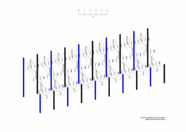 該設(shè)計的一個重要美學(xué)和功能元素是重新設(shè)計的支撐鋼屋頂結(jié)構(gòu),其靈感來自孟德爾的三大遺傳定律。鋼框架,類似于節(jié)點和分支,與孟德爾定律直接對話,特別是世襲隔離的概念。通過玻璃屋頂?shù)耐该鞫龋摻Y(jié)構(gòu)在功能和美學(xué)上都體現(xiàn)了孟德爾對現(xiàn)代科學(xué)的寶貴貢獻。