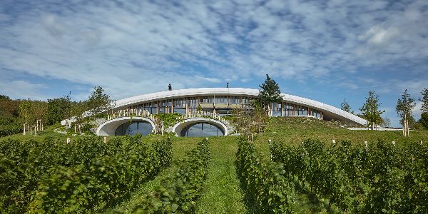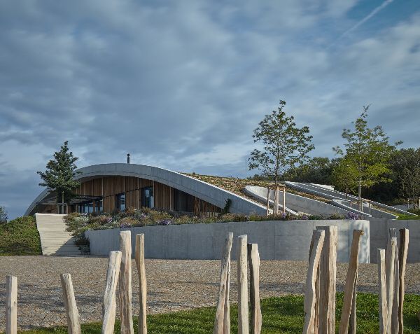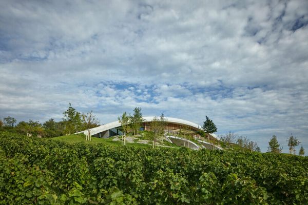 古爾道酒廠體現(xiàn)了對可持續(xù)發(fā)展的承諾,與自然景觀和諧地融合,同時最大限度地減少對環(huán)境的影響。整個建筑被一個弧形的廣泛的綠色屋頂所籠罩,使其與周圍環(huán)境融為一體。隨著植被的茂盛,酒莊在遠處的景色中幾乎看不到了,保持了景觀的視覺和諧。