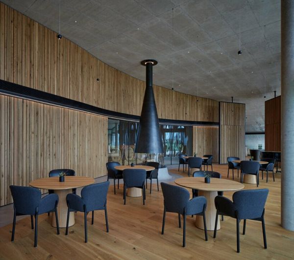 據(jù)設(shè)計團隊介紹,雖然該酒莊采用了傳統(tǒng)的地面設(shè)置,但其建筑概念體現(xiàn)了現(xiàn)代和永恒的本質(zhì)。場所內(nèi)的氣氛概括了美麗、優(yōu)雅和絕對的舒適。材料的選擇,包括裸露的混凝土、玻璃、金屬以及橡木和洋槐木,創(chuàng)造了一種整齊和直接的美感,與建筑的有機形式相得益彰。每一個細節(jié)都是精心制作的,確保精確和質(zhì)量。得益于廣闊的玻璃表面、寬敞的露臺和傾斜的屋頂,該酒莊與周圍的風(fēng)景建立了直接的聯(lián)系。這種整合允許多樣化的自然體驗,捕捉到空間內(nèi)不斷變化的情緒和季節(jié)。
