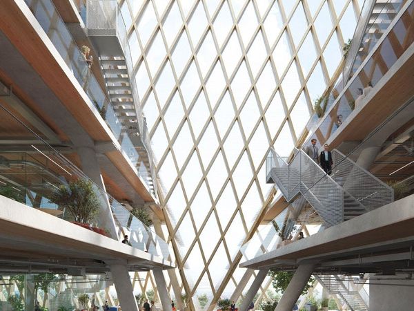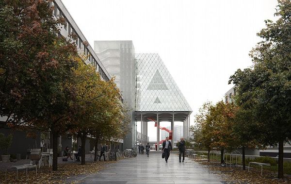 新總部采用高架結構,旨在將可進入的空間擴展到內部,而其透明的輪廓允許與周圍環境無縫融合。該建筑是Leuchtenbergring地鐵站和即將到來的中央社區花園之間的連接點,由一個人行S-Bahn交叉口提供便利。這個連接點通向一個中央廣場,被設計為當地社區的一個誘人的“城市客廳”。巧妙的是,設計利用廣場下面的空間來容納主餐廳、美食區、銀行的會議中心和后勤功能等設施,方便地面的使用。這樣一來,該結構毫不費力地為城市增加了公共空間,而又不影響其自身的要求。