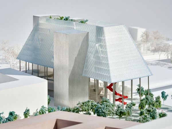 OMA設計的聯合信貸銀行的辦公室位于廣場之上,被安置在一個高于地面22米的梯形體中。雖然該設計向傳統的慕尼黑屋頂致敬,但體量的幾何形狀主要受環境因素的影響。外墻的傾斜度有利于改善附近的空氣流動,而梯形結構中的三個三角形切口使充足的自然光滲透到建筑深處,為工作和休閑空間創造了理想的室內氣候。