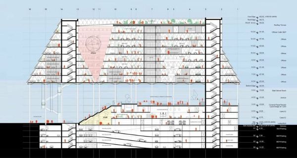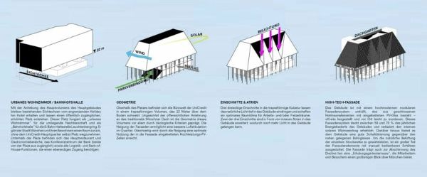 慕尼黑聯合信貸銀行總部是OMA的一個競賽設計,旨在使慕尼黑火車站旁邊的一個平淡無奇的區域恢復活力。正如建筑師所描述的那樣,該項目旨在恢復城市的活力,應對日益影響德國城市的“靈魂的喪失”問題。