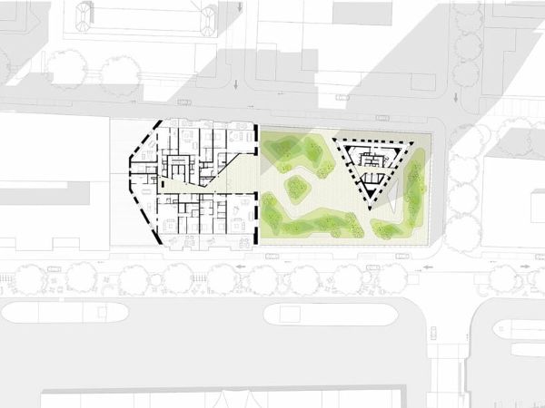 停車場是社區、安全和社會凝聚力的基石,為了促進閑聊和非正式對話,一個重要的設計干預措施將停車場與住宅分開。對于許多居民來說,停車場是他們的日常入口。從這個有利位置,他們通過一個誘人的中庭步入“超新星公館”大廈,中庭可以看到屋頂露臺,鄰居們可以在這里聚會,然后再乘電梯上樓。這一體貼的設計元素在住戶之間培養了強烈的社區意識。
