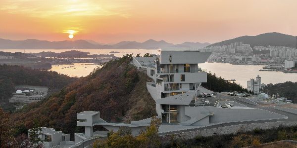 由IDMM建筑事務所設計的“港口堡壘”位于韓國多爾山島白草吉的高原上。該建筑位于海拔100米的高山上,占地面積9936平方米,從自然景觀中脫穎而出。向西北方眺望,麗水市優雅地環繞著鐘吾山、瑪拉伊山和風景優美的座山公園,勾勒出一幅如詩如畫的海岸全景圖。西南方向的城市天際線與瀨久治村和南海形成迷人的對比。
