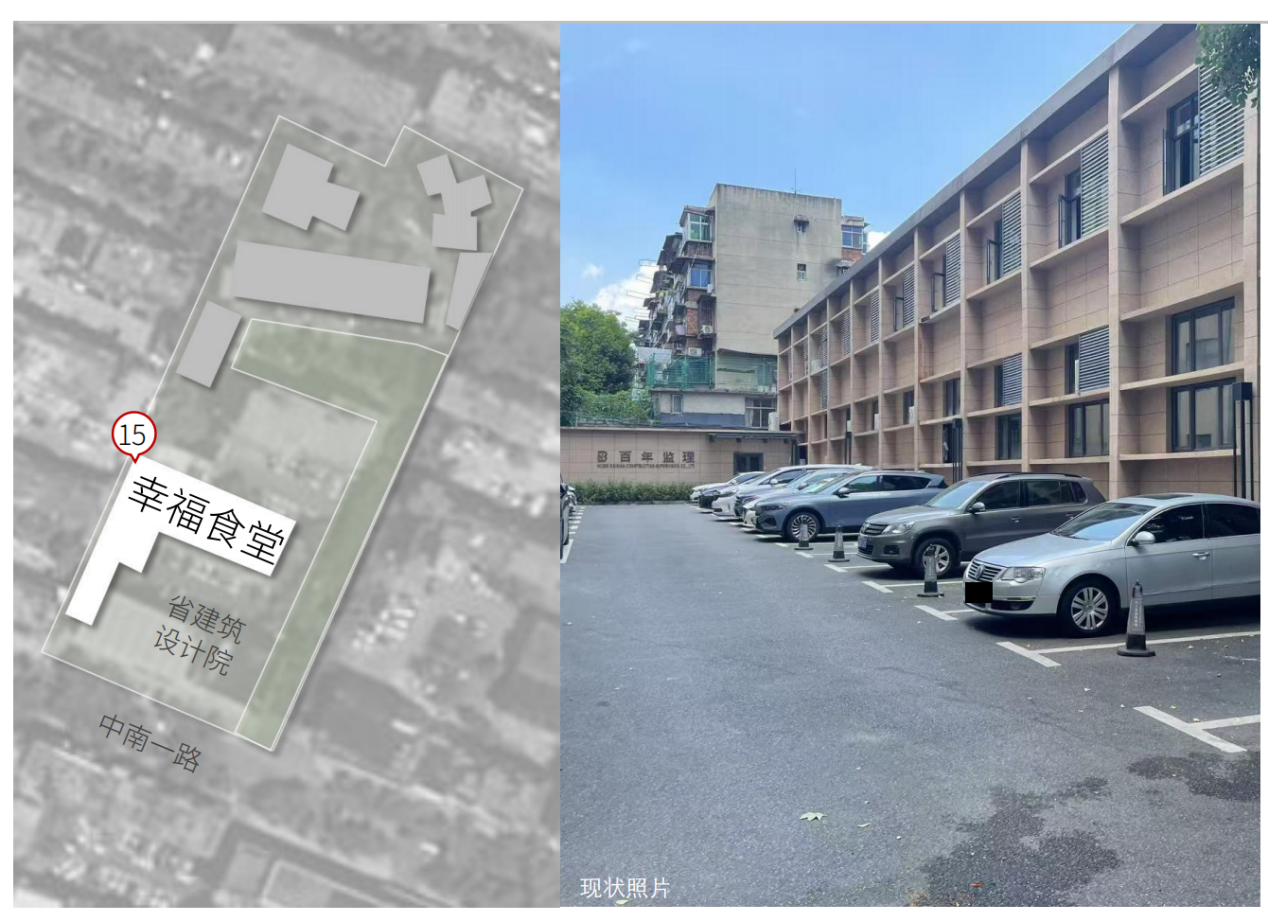 ????2、使用面積:幸福食堂位于中南一路66號湖北省建筑設計院內辦公樓2號樓1樓,建筑面積629.65