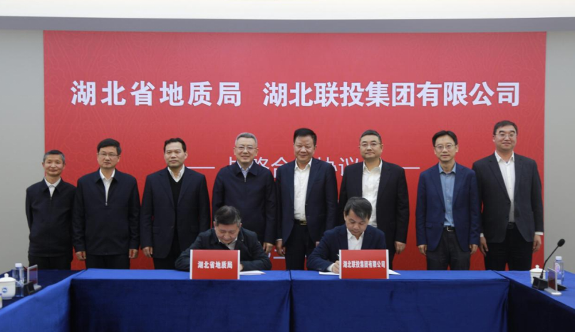 鄒朝富與省地質局黨委委員、副局長胡清樂代表雙方簽訂戰略合作協議。根據協議,本著優勢互補、共同發展、互惠互贏的原則,雙方將充分發揮各自的優勢和特色,在礦產地質、基礎建設、生態環境、產業科技創新等領域全面加強合作,落實湖北省流域綜合治理和統籌發展規劃綱要,不斷提升湖北省能源資源安全保障能力水平,共同為建設全國構建新發展格局先行區貢獻力量。