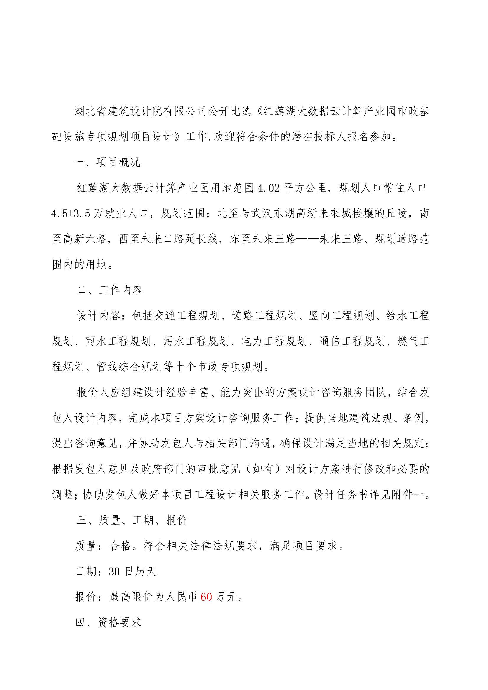 紅蓮湖大數據云計算產業園市政基礎設施專項規劃合作單位公開比選詢價公告
