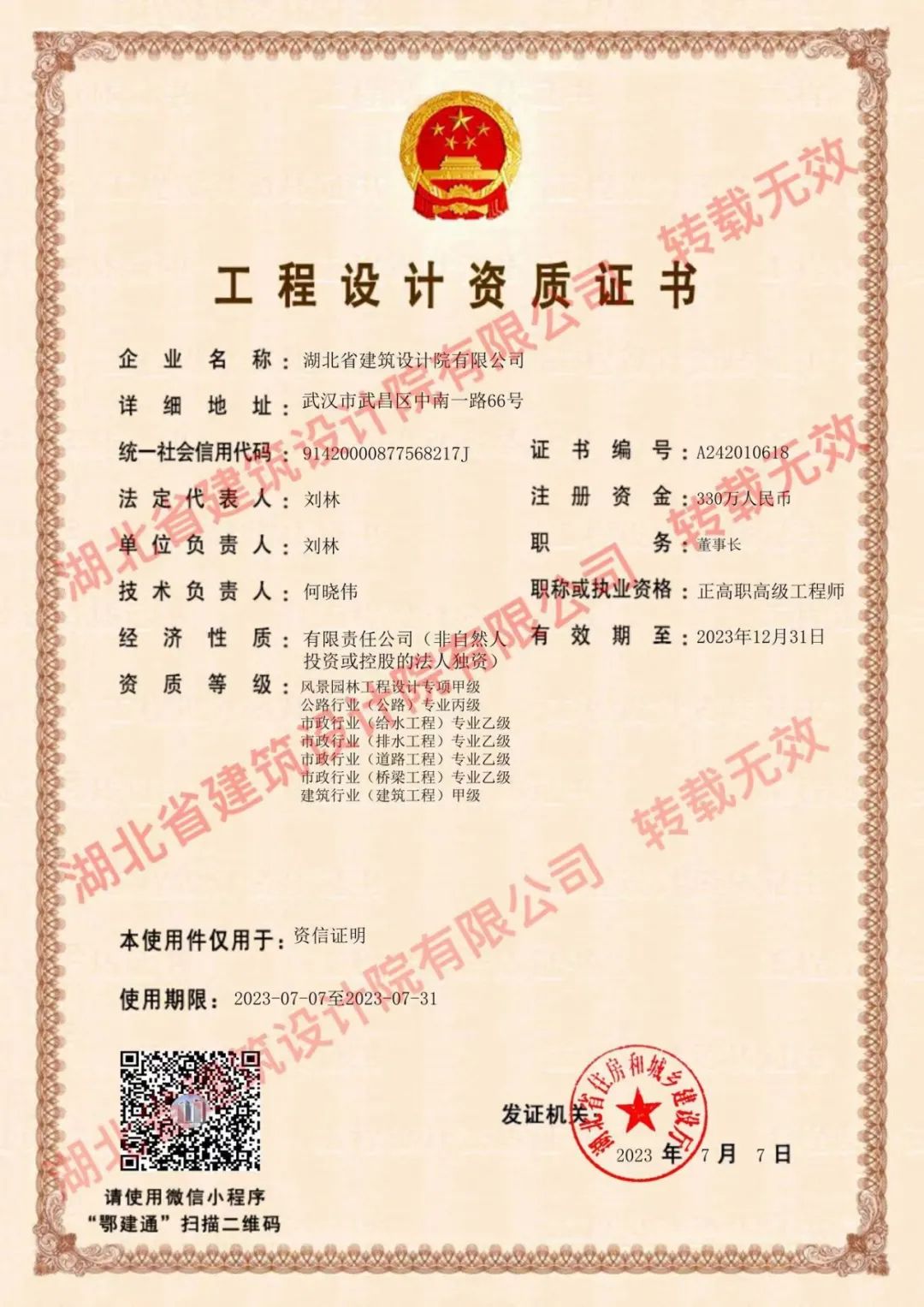 喜報!省建筑設計院風景園林工程設計專項資質喜升甲級