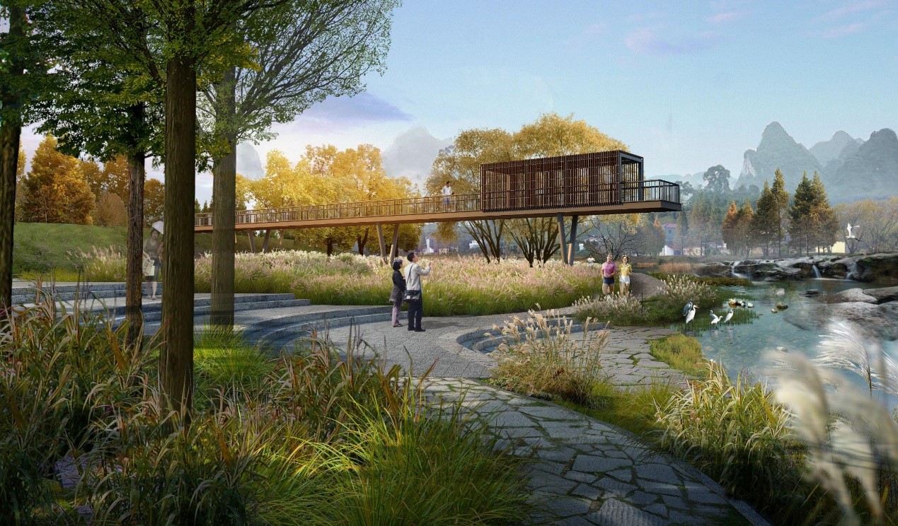 十里洛江片區規劃范圍為中渡古鎮至香橋巖溶國家公園,香橋鹿谷片區以香橋景區為主體范圍,項目運用景觀要素文化植入的方式,配給不同的沿岸景觀營造,節點設計,分段落、分主題地打造綠水青山、潺潺而動的洛江風貌。