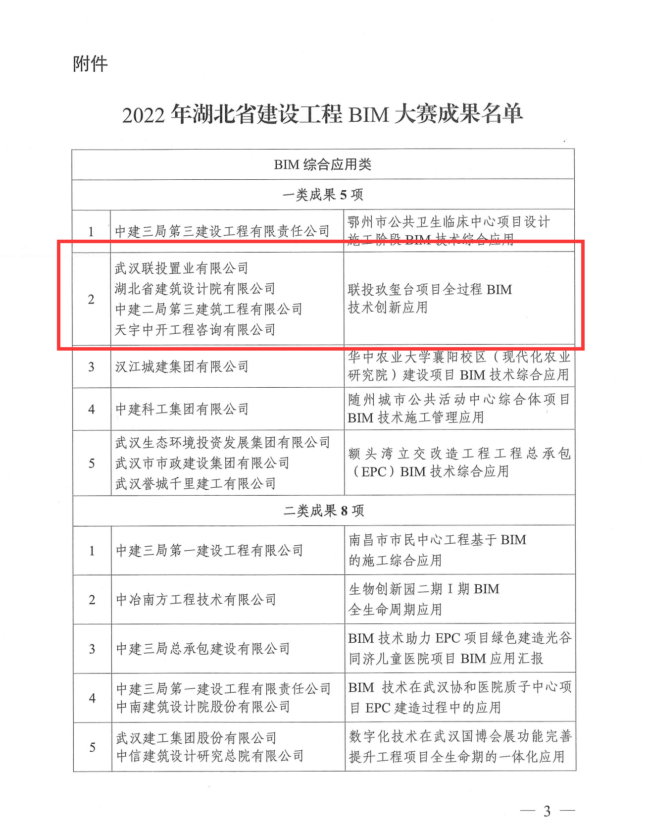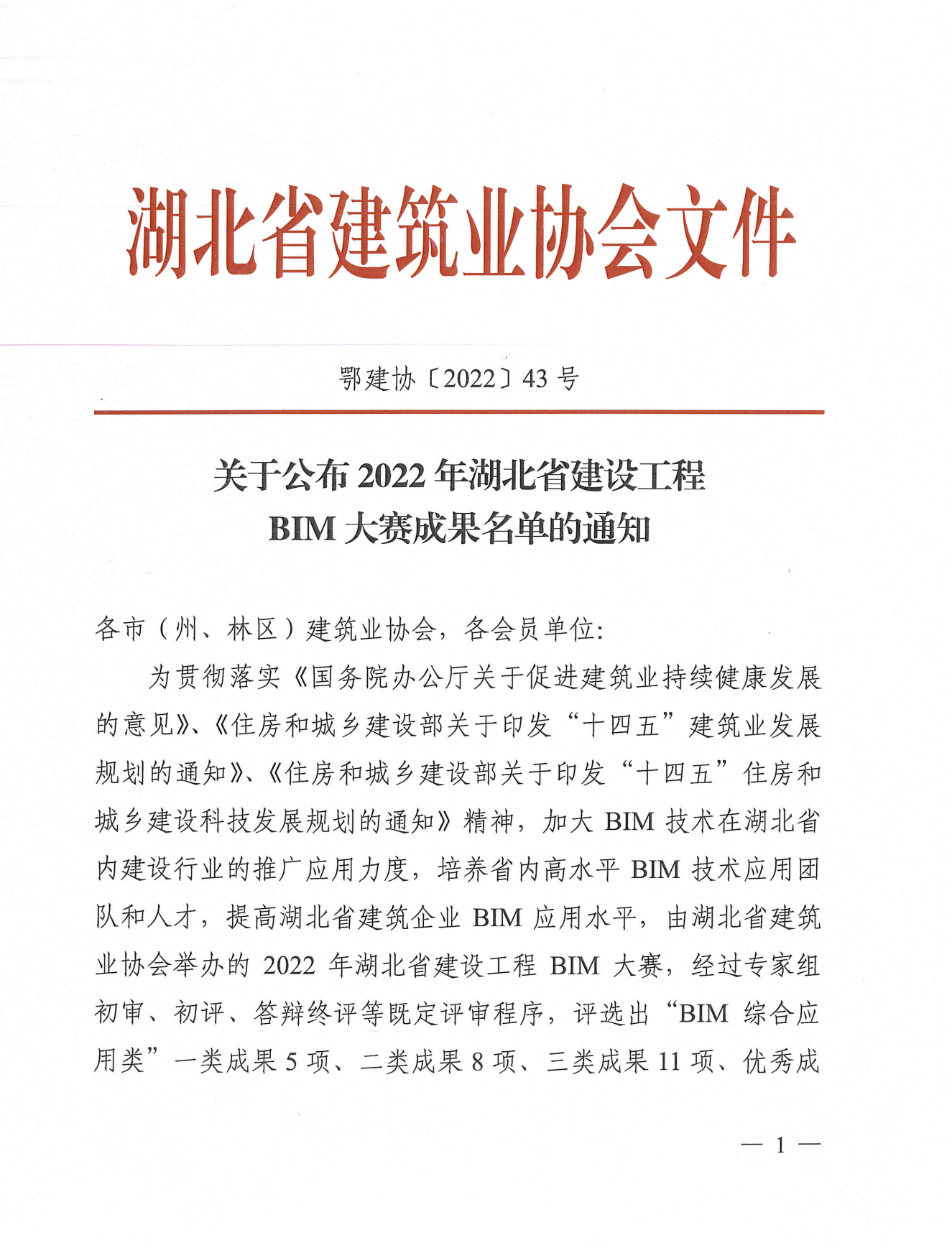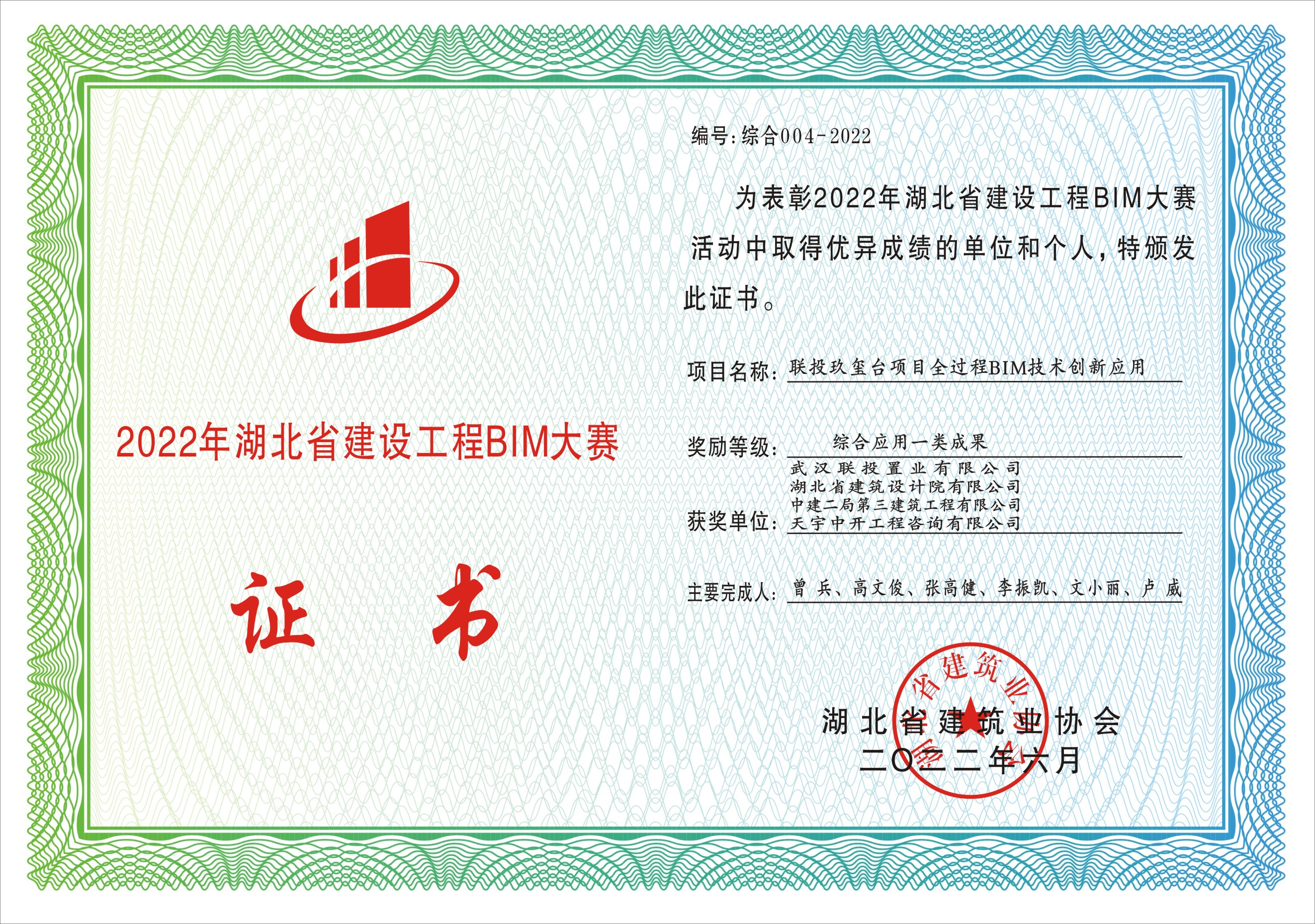 2022年6月23日,由湖北省建筑業協會舉辦的2022年湖北省建設工程BIM大賽在武漢落幕,由我院與聯投置業等單位聯合申報的聯投玖璽臺項目,從參賽的100多個項目中脫穎而出,成功斬獲BIM技術綜合應用一類成果獎,實現省內首個房地產項目BIM技術全過程應用,也是湖北聯投首個以業主方主導模式下的BIM技術應用。
