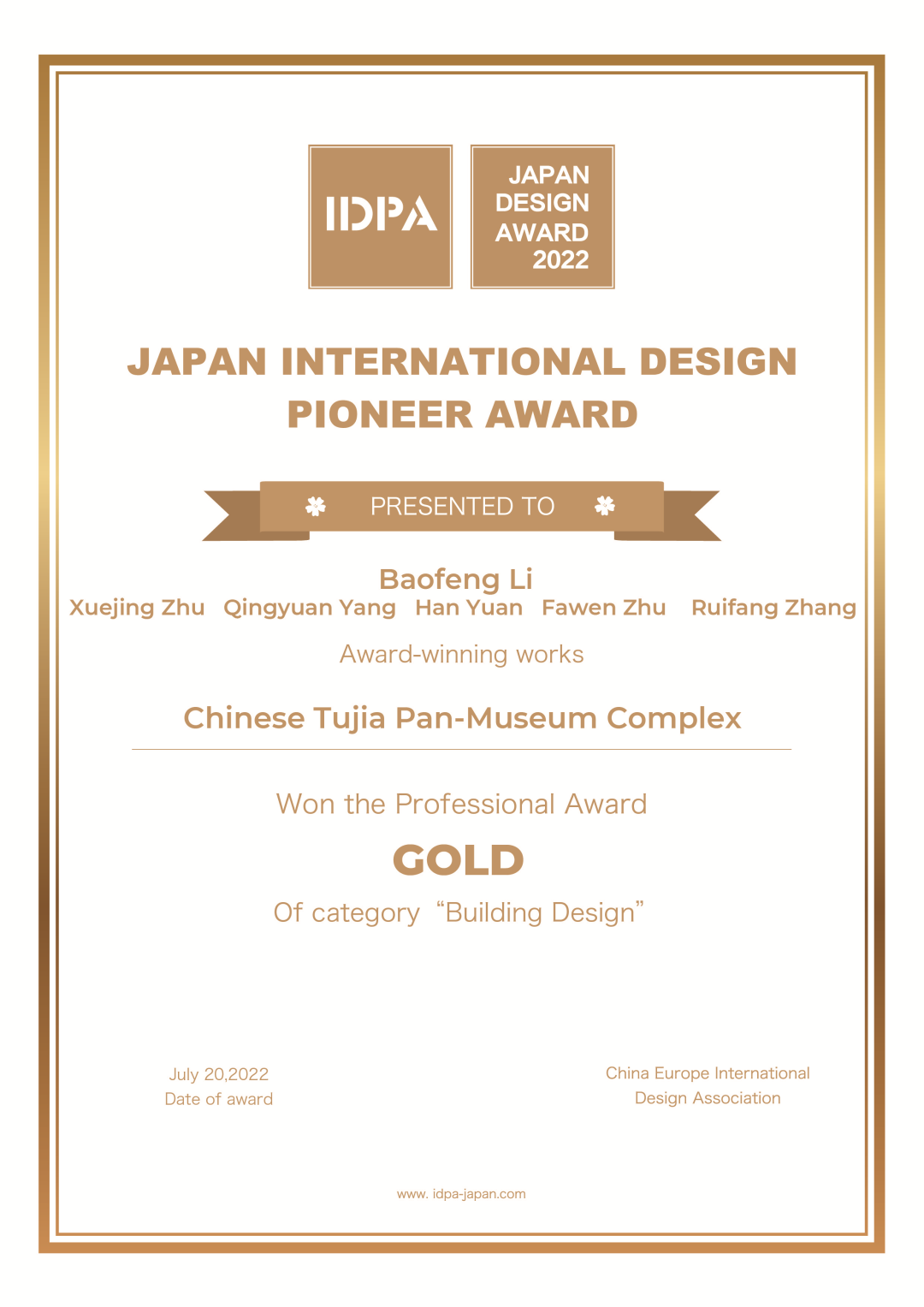 《中國土家泛博物館》榮獲2022日本IDPA AWARD國際先鋒設計大獎金獎