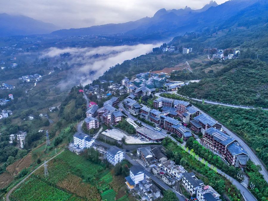 鄂旅投女兒寨度假酒店,屹立在恩施大峽谷景區峽谷半山,依山勢蜿蜒而建,融土家、羌族、苗族的建筑理念為一體。吊腳樓是土家傳統民居特色最鮮明的建筑類型。本設計采用“減少接地”的半干欄方式,在減少土方量的同時創造了更多的使用空間