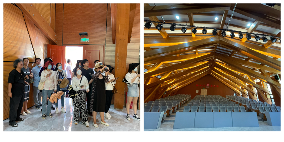 國際研學營的報告廳是國際研學營中的重要公共建筑,本設計秉持以真實結構表達空間的概念,室內不做任何裝修,以建筑結構的美感向土家傳統建筑技藝致敬的同時彰顯了當代的精神。
