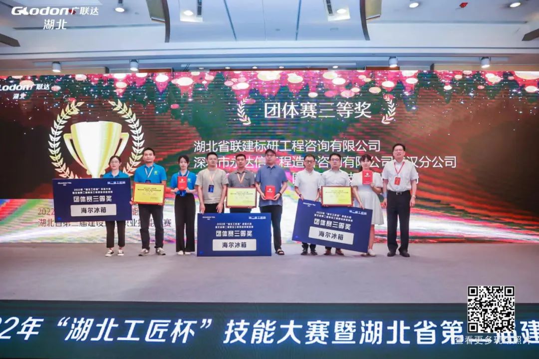 8月18日2022年“湖北工匠杯”技能大賽——湖北省第二屆建設工程造價職業技能競賽總決賽在武漢光明萬麗酒店順利舉辦,本次大賽由湖北省人力資源和社會保障廳職業技能鑒定指導中心和湖北省建設工程造價咨詢協會主辦,武漢建設工程總造價管理協會、十堰市建設工程造價協會協辦,武漢廣聯達三山軟件技術有限公司承辦。省建筑設計院二級公司湖北省聯建標研工程咨詢有限公司作為湖北數字新咨詢領航企業,本次由肖凱、張敏志、李貝貝3名造價咨詢工程師組成代表隊參賽并榮獲團體賽三等獎。