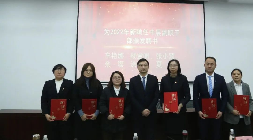 王睿為2022年新聘任中層副職干部頒發(fā)聘書。