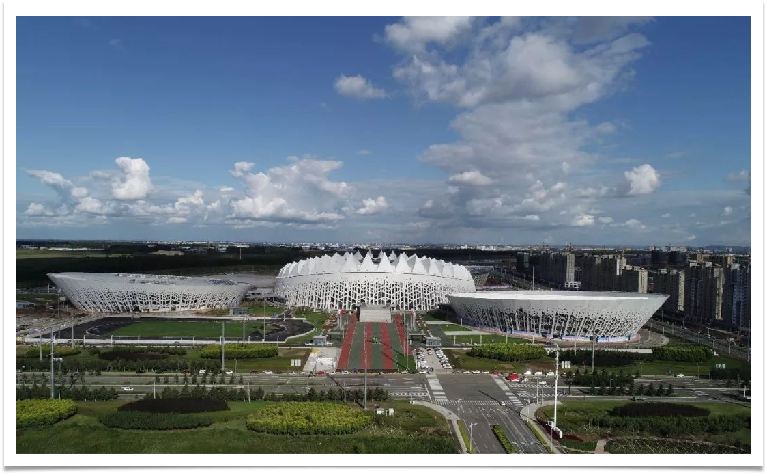 冬奧場館、國家跳臺滑雪中心項目,楊霄從工程選址與滑道關系、山地建筑特點、功能分區、結構與區域關系、限制條件下懸挑體系的實現、鋼筋混凝土結構偏心、抗側體系與抗倒塌設計、地震作用放大與抗震分析等方面進行了嚴謹而細致的精彩分享。長春奧林匹克公園“一場三館”,楊霄分享了其團隊采用“徑向滑動鉸支座方案、索膜結構、鋼-混凝土組合環桁架”等技術方案攻堅克難,既滿足了場館的功能需求,也實現了場館“長白林海”的主體立意。